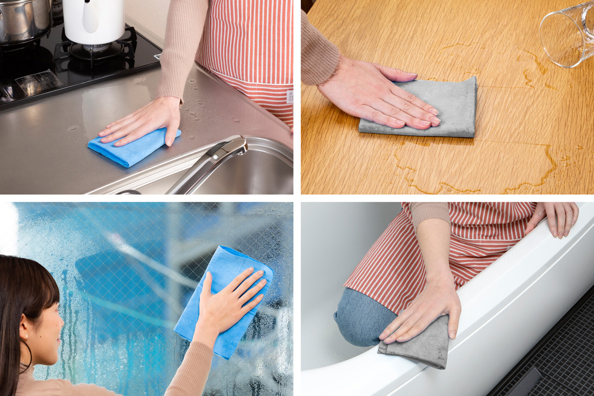 また、綿タオル等と異なり、絞れば吸水力が復活し連続して使用可能です。キッチンや洗面台はもちろん、