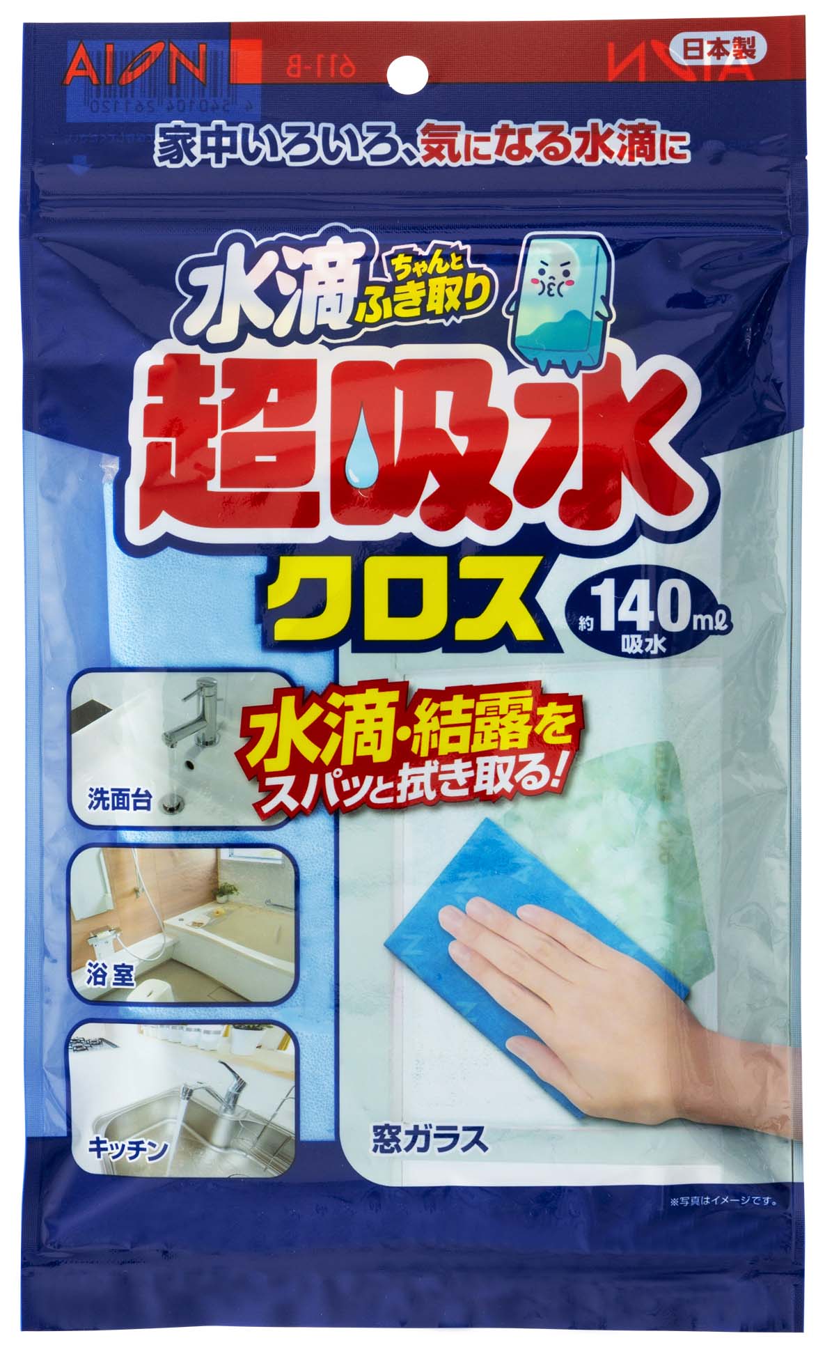 1つ目はこのコラムでも紹介した当社の看板商品「水滴ちゃんと拭き取り 超吸水スポンジクロス」です。