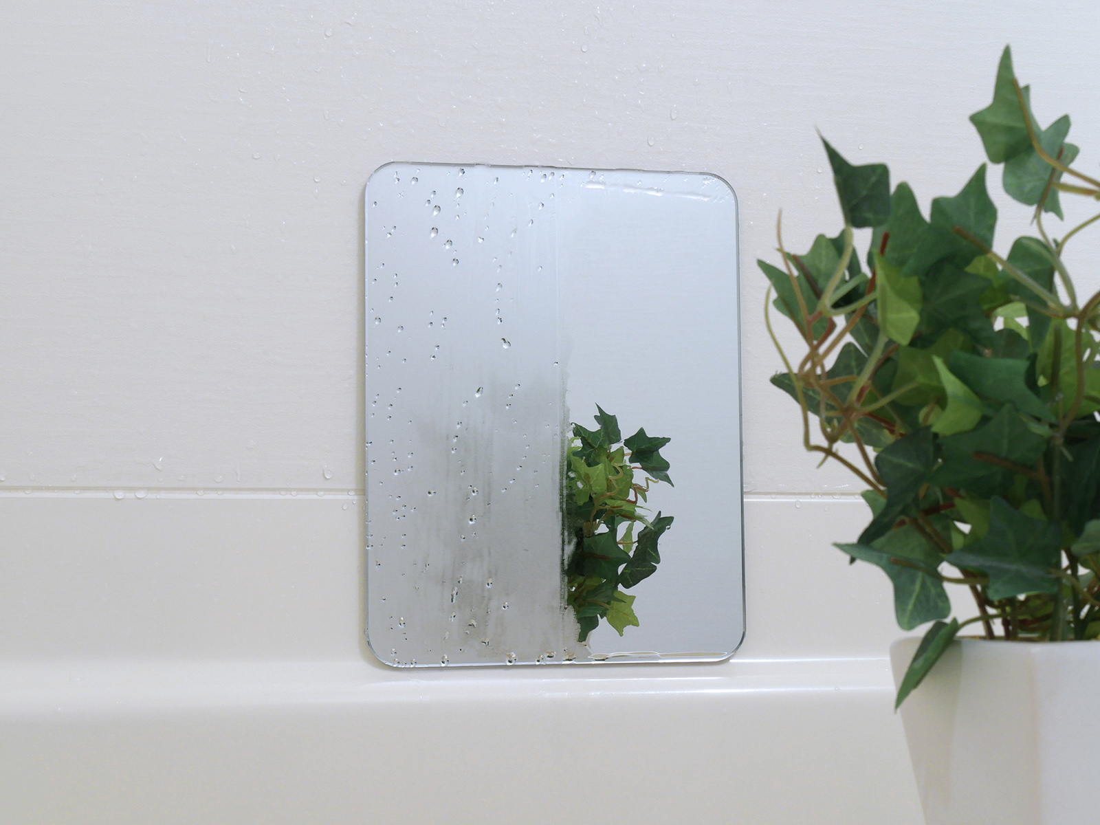 ※鏡の表面に水の膜ができてくもりを防ぎます。入浴ごとにシャワーなどで鏡を濡らしてください。