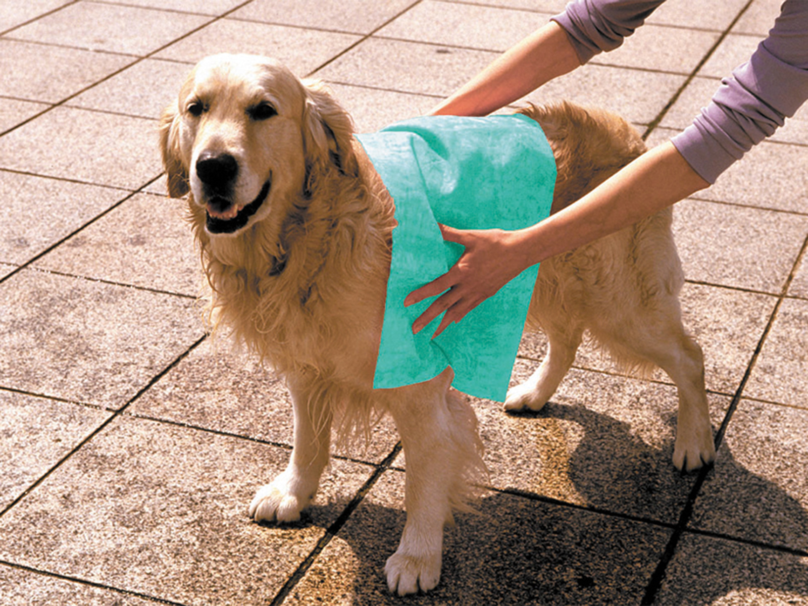 - 軽く押さえるだけで水分をサッと吸収。広げて胴まわりを 包み込めば短時間で水滴の拭き取りができます。