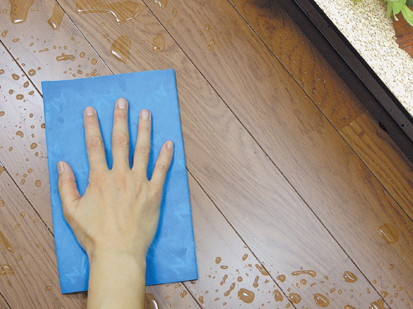 - 水槽の水替えや掃除の際にこぼした水滴や、ガラス面などの水滴をさっと吸水できます。