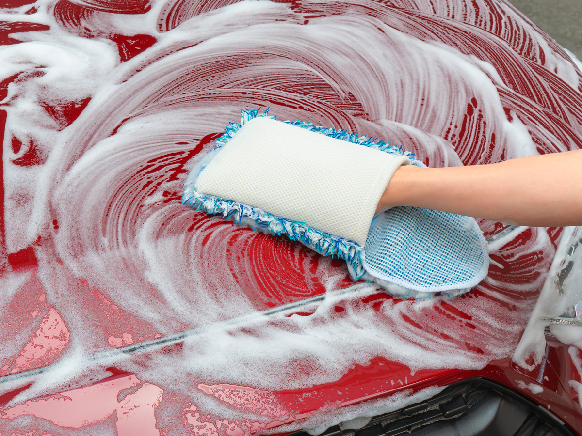 - 毛足の長いマイクロファイバーと当社独自のPVA製「超保水スポンジ」を組み合わせたことで泡立ち性能を強化。滑らかな使用感で、汚れを包み込むように洗浄!