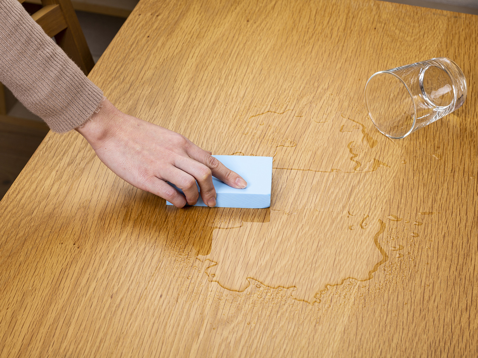 中性洗剤を含ませたスポンジや布巾等で擦って、洗い落してください。