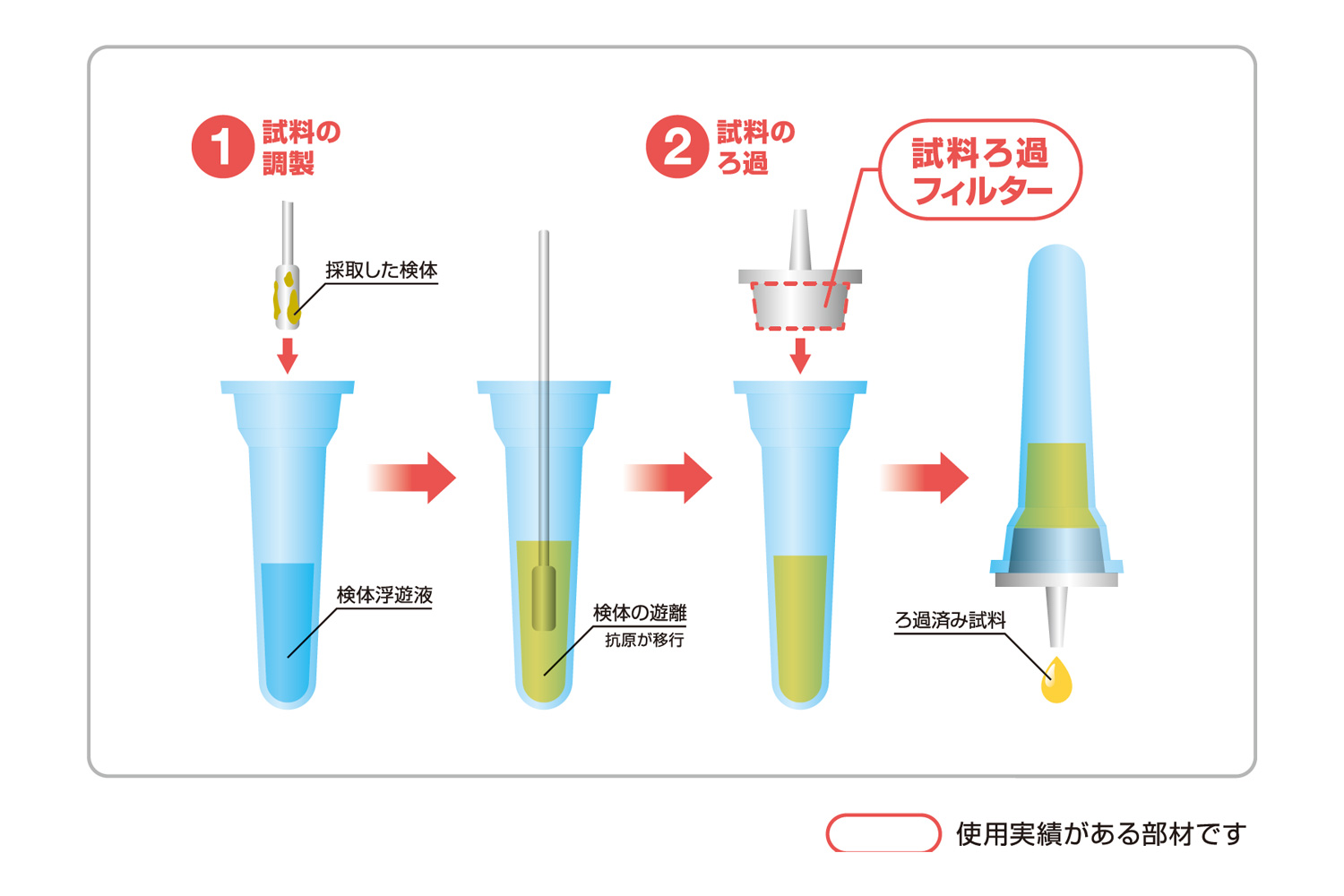 またその連続気孔構造と、気孔率の高さ、気孔径のコントロールにより、検査キットの試料ろ過用フィルターとしてもご利用いただいております。